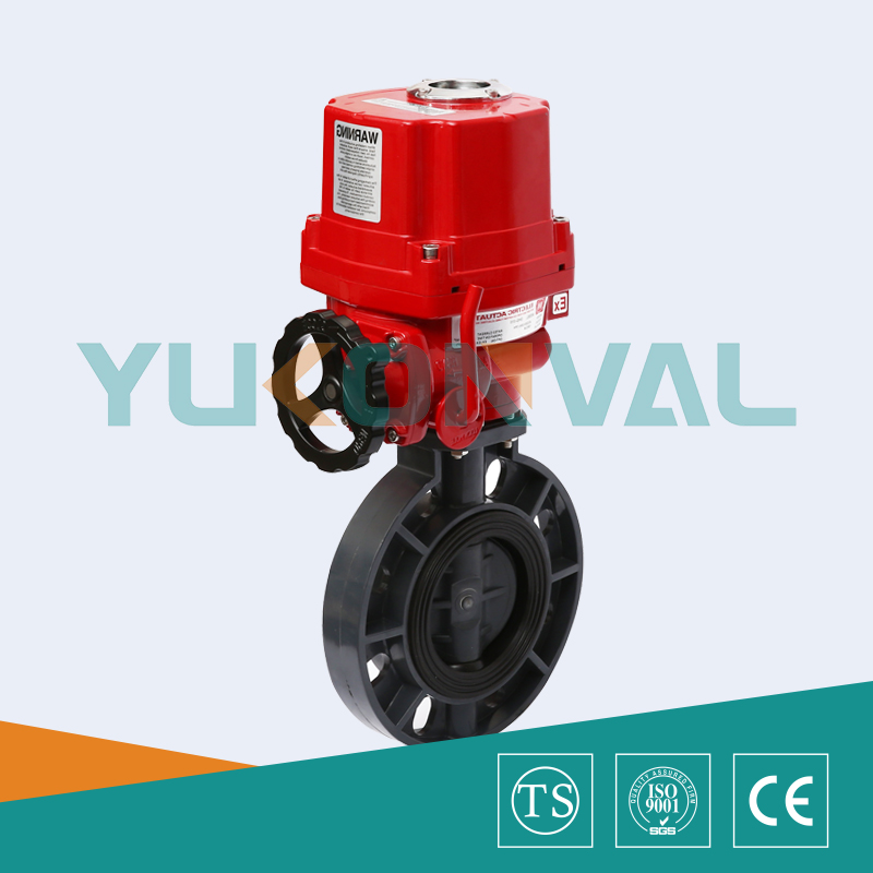 電動塑料蝶閥是采用一體式電動執行器于塑料蝶閥組成。輸入220V電源即可直接進行開關量調節,亦可內置伺服模塊,輸入控制信號(4~20mADC或1~5VDC)及單相電源即可控制運轉。電動塑料蝶閥,UPVC電動蝶閥,SD971S耐腐蝕電動蝶閥具有重量輕、耐腐蝕性強,被應用于多個領域,如一般純水和生飲水的管路系統、排水和污水管路系統、鹽水和海水管路系統、酸堿和化學溶液系統等多個行業,品質得到廣大用戶的認可。電動塑料蝶閥,UPVC電動蝶閥,SD971S耐腐蝕電動蝶閥其主要特點如下: